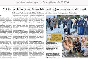 Zum diesjährigen Holocaust-Gedenktag am Dienstag auf dem jüdischen Friedhof in Hemer haben sich auch viele unsere Schülerinnen und Schüler engagiert. Einige Schülerinnen und Schüler haben die von uns initiierten Stolpersteine der Familie Friedland, Bartmann und Blumenthal gereinigt. Eine Reinigung der Messingplatte mit den eingravierten Namen […]