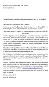 Das Schulministerium hat aufgrund der vorhergesagten Eisglätte morgen früh entschieden, dass morgen, Montag, 12.1., kein Präsenzunterricht stattfindet. Die Schule bleibt aus Sicherheitsgründen geschlossen. Der Unterricht erfolgt in digitaler Form als Distanzunterricht. Wir bitten um Verständnis für diese Entscheidung.
