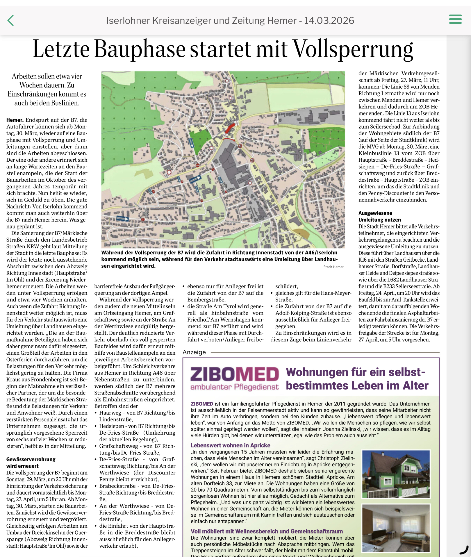 Neues von der Sperrung der B7: