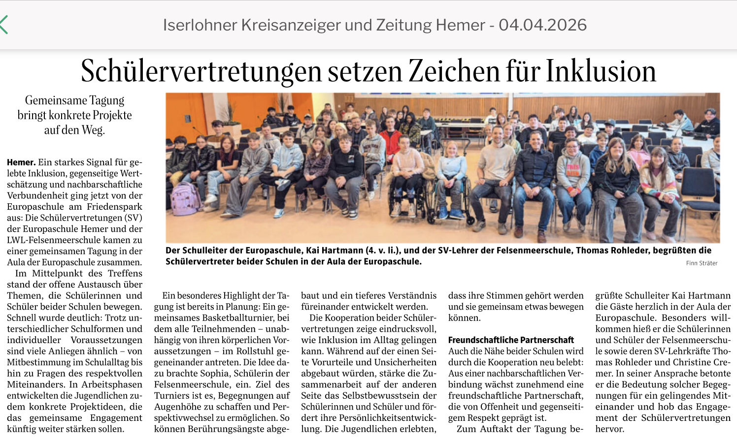 Der IKZ berichtet jetzt über unser gemeinsames Treffen der beiden Schülervertretungen unserer Schule und von der Felsenmeer Schule. Bei der Tagung haben wir gute Ergebnisse besprochen und auch gemeinsame Aktionen geplant.